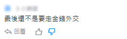 对此,岛内网友批评称,最后还不是要走“金援外交”?↓