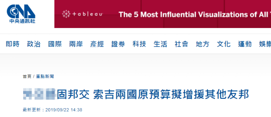 报道提及,2020年度台外事部门主管预算编列282.15亿元(新台币,下同),较2019年度增加22.77亿元,台外事部门解释称,主要是增列国际合作援外经费。
