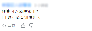 有网友讽刺称,就是要花钱,没用到的预算就缴回,“断交部”做不到↓