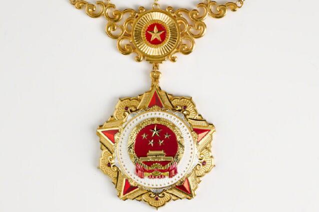 国家荣誉称号奖章以红色、金色为主色调,章体采用五星、天安门、牡丹、旗帜、光芒等元素,章链采用中国结、花卉等元素,整体使用冷压成型、花丝镶嵌、珐琅等工艺制作,象征国家荣誉称号获得者在各领域各行业作出的重大贡献,彰显示范引领作用,激励全国各族人民不忘初心、牢记使命,为实现中华民族伟大复兴的中国梦而不懈奋斗。