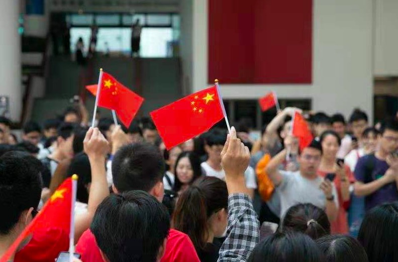 9月28日下午1时30分,香港科技大学数百名学生在港科大大堂举行“快闪”活动,齐声高唱国歌、《歌唱祖国》《我和我的祖国》《我的祖国》《我的中国心》《东方之珠》等六首歌曲,庆祝新中国70华诞。数百名学生整齐嘹亮的歌声响彻香港科技大学大堂,现场气氛热烈。