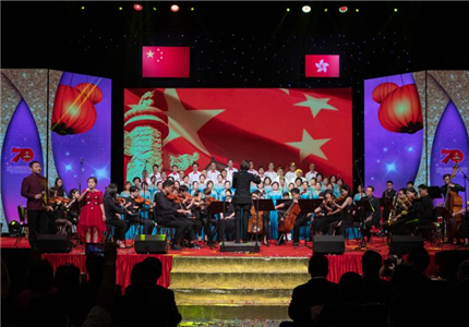 为庆祝中华人民共和国成立七十周年,由香港岛各界联合会主办的“庆祝中华人民共和国成立七十周年港岛欢腾贺国庆文艺晚会”9月28日晚在香港伊丽莎白体育馆举行。