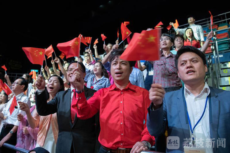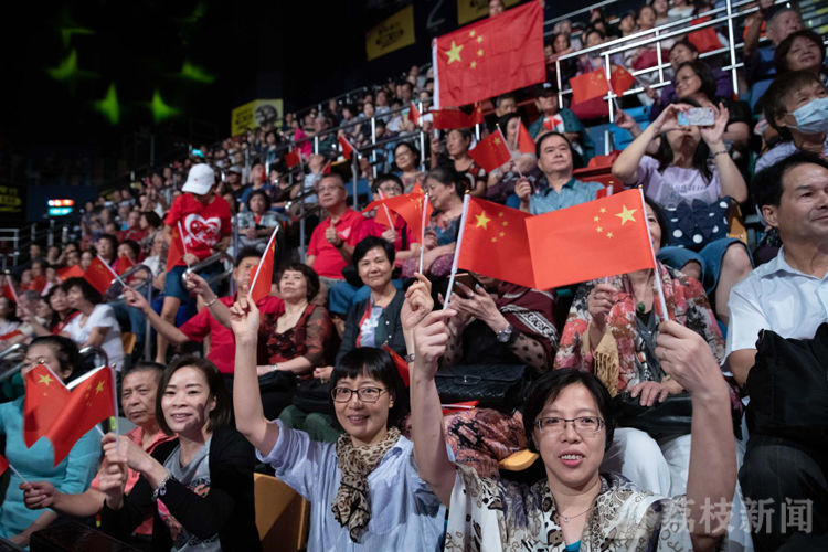 晚上7时30分,位于香港湾仔爱群道18号的伊丽莎白体育馆内人头攒动,经过简短的开幕仪式之后,文艺演出正式开始。《今天是你的生日,中国》、《狮子山下》、《红旗飘飘》、《我和我的祖国》,接连四个合唱曲目一下子将现场氛围带动起来,不少观众挥舞国旗站起来一起跟唱。舞蹈《东方红》、《星光芭蕾》,男声独唱《我爱你,中国》、《乌苏里船歌》,杂技《男子的力量》、《花式草帽》……多种形式的表演精彩纷呈,演出团队不仅有香港本地的,也有来自内地的,充分体现出共贺国庆,共祝祖国好的美好氛围。