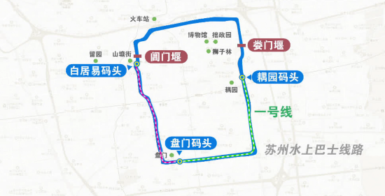 9月28日,苏州旅游再添新体验,首批两条水上巴士线路投入试运营。此次投入试运营的分别为水上巴士1号线和2号线。两条线路以盘门景区码头为换乘点,1号线往东开往耦园景区码头。2号线往西开往白居易码头。试运行阶段,两条水上巴士发班时间为每天上午10点和11点,下午2点和3点,实行双向对开,单程行驶时间约30分钟。