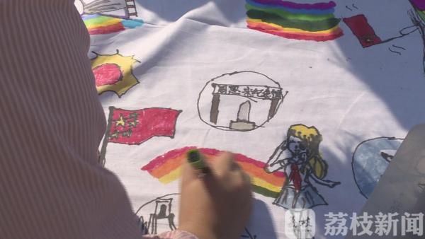 在活动现场,小朋友们或三五个一群、或一个人趴在长卷上,努力用最美的色彩,表达对祖国的深深祝福和挚爱。