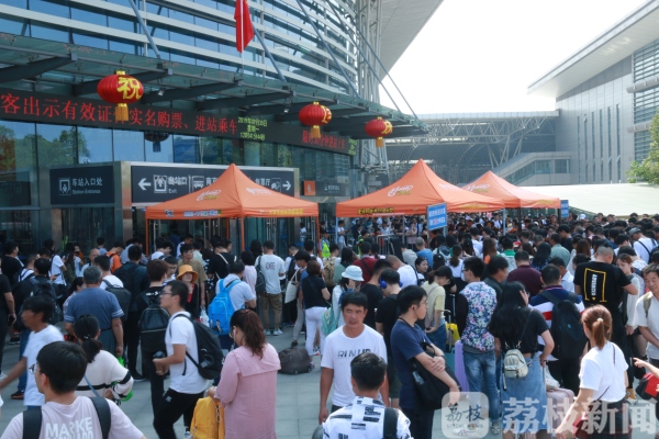 为满足广大旅客出行需求,国庆黄金周期间,铁路南京站计划增开上海、盐城、南通、徐州、芜湖等方向临时旅客列车52.5对,其中始发列车24对。除此之外,铁路南京站还将增开上海、芜湖、南通、杭州、汉口、长沙等方向的高峰线旅客列车36对,并对旅客列车进行重联、加挂等扩编措施,最大程度的满足旅客出行需求。国庆黄金周期间,铁路南京站71个通道的自助实名制核验闸机全部开启。铁路南京站还在南京地区大中专院校招募了80名志愿者,充实到自助售票厅、进站安检口、“158”雷锋服务站等重要服务场所,提供导购导乘和“老、弱、病、残、孕”重点旅客帮扶,让旅客顺利进站乘车。