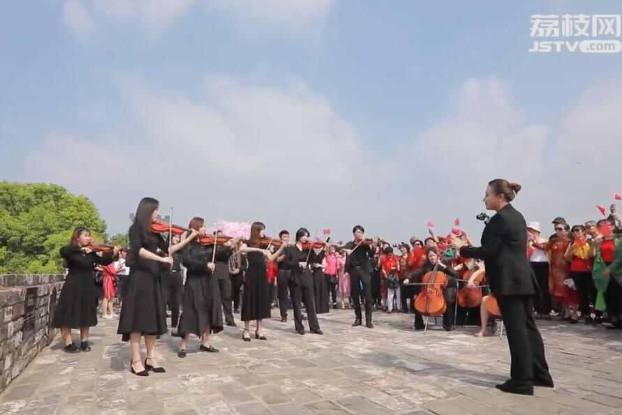 庆祝新中国成立70周年,最近,《我和我的祖国》已经成为大家随口哼出的旋律。但是,今天上午在南京解放门明城墙上唱响的这首《我和我的祖国》最为特别。这是一首融入了京剧音乐元素的歌曲,由中央戏剧学院作曲系教授陈建忠改编,江苏省京剧院原副院长、国家一级琴师蔡万军指导,江苏省京剧团演员和南京市成贤街小学少儿京剧团的孩子们一同演唱。此次快闪活动,也是这首京歌的首秀。