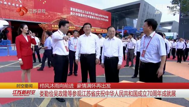 上午9时50分许,娄勤俭、吴政隆等领导同志来到南京国际博览中心,步入展区参观展览。江苏省庆祝中华人民共和国成立70周年成就展以“礼赞新中国、奋进新时代”为主题,通过综合展、地方展和室外展3个展区,综合运用场馆展览、网上展览、挂图展示等形式,全面展示了中华人民共和国成立70年来党领导江苏人民进行建设、改革和发展的伟大历程、巨大成就和宝贵经验,突出展示了党的十八大以来我省贯彻落实习近平总书记关于江苏工作重要讲话指示精神,努力推动高质量发展走在前列的巨大成就。