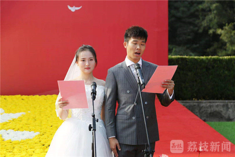 献花仪式上,新婚夫妇代表们还向全省广大青年发出倡议,倡议青年一代们饮水思源,让缅怀英烈、崇尚英雄在全社会蔚然成风;争当红色传人,接续奋斗,肩负起民族复兴的时代重任,将先烈们参与开创、为之奋斗的革命事业不断推向前进,为建设“强富美高”新江苏,推动高质量发展走在前列贡献自己的青春智慧。