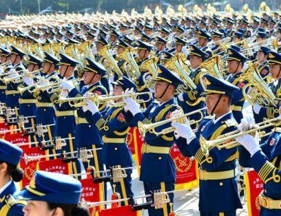资料图:中国人民解放军联合军乐团国庆阅兵训练。中新社发 孙晓萌 摄
