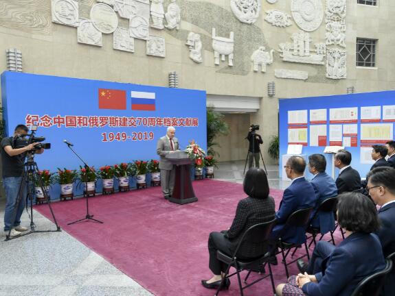 9月29日,纪念中俄建交70周年档案文献展开幕。展览通过文件影印和实物向人们展示了建交以来两国关系的发展历程。