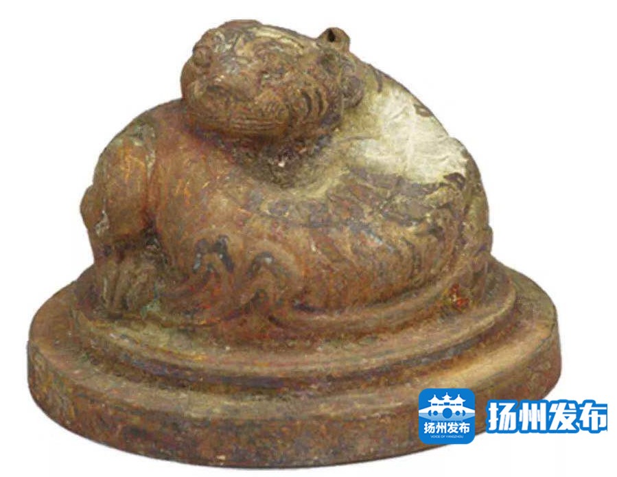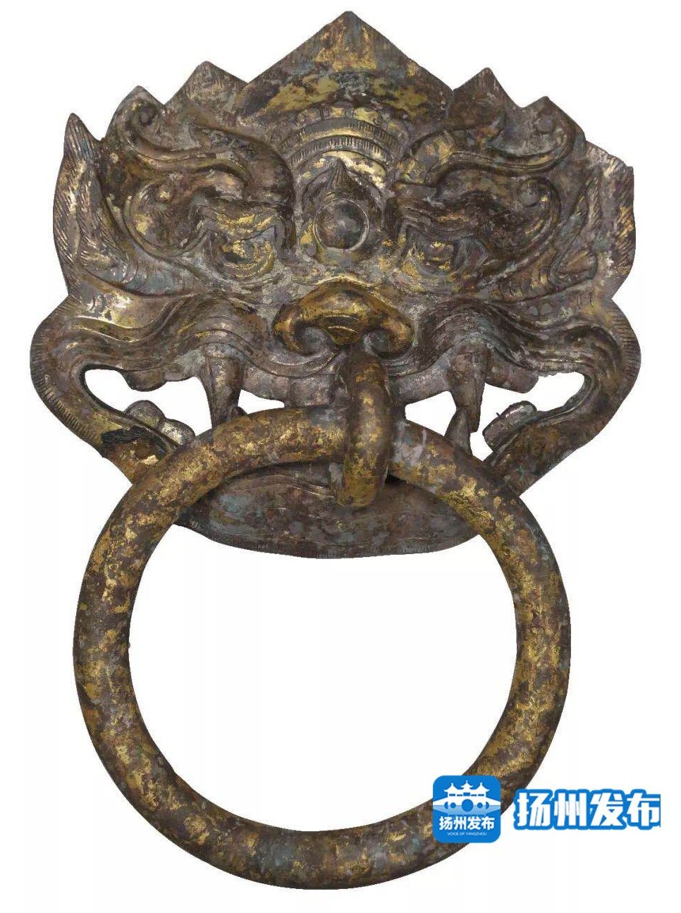 1979年于高邮神居山出土的汉广陵王刘胥夫妇合葬墓,曾因“黄肠题凑”木椁墓的高规格而引起全国关注。此次展览中,汉广陵王墓的一件连木地栿铜轮格外具有历史意义,也是首次在扬州博物馆展出。据介绍,这是为推动棺柩使用的物件,铜轮上刷有褐色的油漆,“很多人疑惑那么重的黄肠题凑木材是如何搬运的,这件工具的出土彰显了先人的智慧。”博物馆工作人员介绍,而先后荣获全国十大考古新发现的高邮龙虬庄遗址以及隋炀帝墓,均有出土文物在展览中呈现。