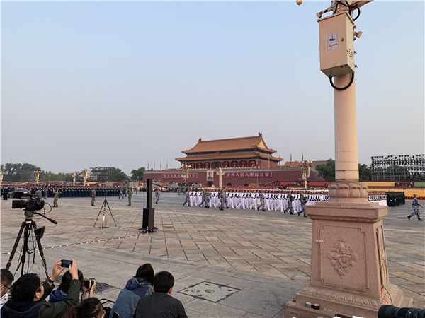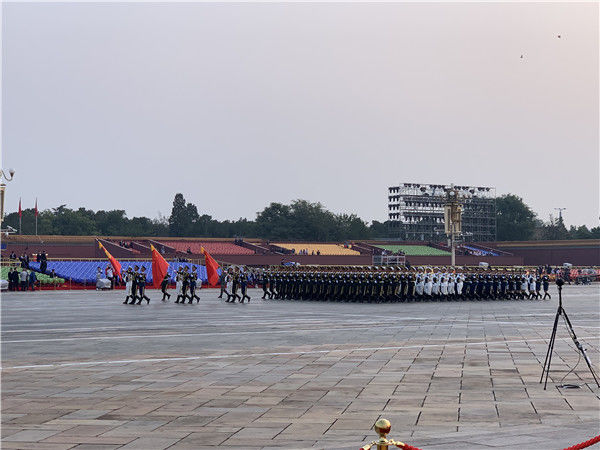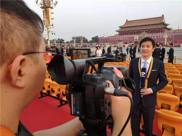 庆祝中华人民共和国成立七十周年阅兵式将在十点正式开始,江苏广电记者受邀前往天安门东临观礼台参加报道。