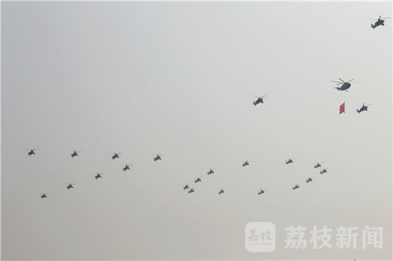 2009年,记者曾深入陆军航空兵的空中梯队阅兵场,今天,当我们看到战机组成了“70”的数字梯队精彩又新奇时,你可能并不知道这其中的危险性也前所未有。直升机编队飞行速度为每小时160公里,受阅时邻近的两架直升机之间横向间隔不超过20米,前后距离也不能超过20米,这相当于两架直升机之间仅隔着一架飞机的距离,0.2秒的疏忽就可能发生碰撞,相当危险。而除了要保证飞行安全外,如何保持编成的数字队形整齐对空中梯队来说更是一个挑战。