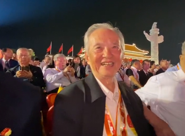 2019年10月1日晚8点,为庆祝中华人民共和国成立70周年,北京天安门广场举行大型联欢活动。在活动现场,一位90岁的老爷爷接受江苏台记者采访:“1949年我参加了开国大典,70年后还在这个位置观礼,我很高兴”。中国的明天,必将更加美好!