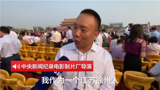 中央新闻纪录电影制片厂导演:我作为江苏徐州人,不但参与国庆当天的现场,同时以工作人员的身份参与保障工作,感到非常的荣幸和自豪,祝福祖国越来越昌盛,这盛世如你所愿。