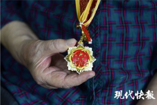 当天上午11点,记者跟随栖霞区委宣传部等一行人,来到位于燕子矶街道的周忠秀老人家里。当时,周忠秀正在看阅兵式。见到有人来探望她,她还指着电视问道:“你们有没有看到我儿子?”原来,老人的大儿子叶培建受邀现场观礼阅兵式。老人的语气中,不乏骄傲欣慰之情。她的儿子叶培建从小生活在栖霞燕子矶。如今已是中国科学院院士、中国空间技术研究院技术顾问、研究员、南京航空航天大学航天学院院长。就在今年国庆节前夕,叶培建被授予“人民科学家”国家荣誉称号,被评为“最美奋斗者”。能取得这番成就,离不开母亲周忠秀的悉心培养。现场,栖霞区委宣传部、区委老干部局给周忠秀老人送上了一束鲜花和一份贺信,祝贺她儿子叶培建获得殊荣。周忠秀也特别开心,嘴角弯弯露出微笑,还竖起了大拇指。