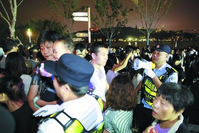 当晚8点10分,当焰火燃放开始的时候,在玄武门前执勤的鼓楼公安分局民警小赵正站在人群中,一边疏导一边解决游客遇到的困难。与此同时,她的丈夫、市公安局反恐支队民警小潘则在玄武湖公园另一个点位上坚守岗位。