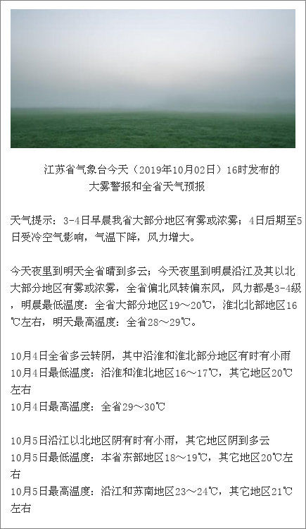 预计3-4日早晨,江苏大部分地区有雾或浓雾,早起出行需关注最新天气信息,注意交通安全。