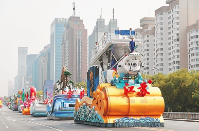 福建日报特派记者张辉在国庆前探访位于北京工人体育场的彩车基地时,就被“江苏智造”彩车吸引了眼球。“国庆当天,江苏彩车在一众彩车中果然格外显眼。”张辉说,“蛟龙”号、“神威·太湖之光”等名气响当当的国之重器,体现了江苏的“硬核实力”。云锦云纹水纹图案,则展现了一个既大气又包容,既柔美又文艺的江苏形象。“没去过江苏的我,已经把江苏行给排上旅行目的地了。”
