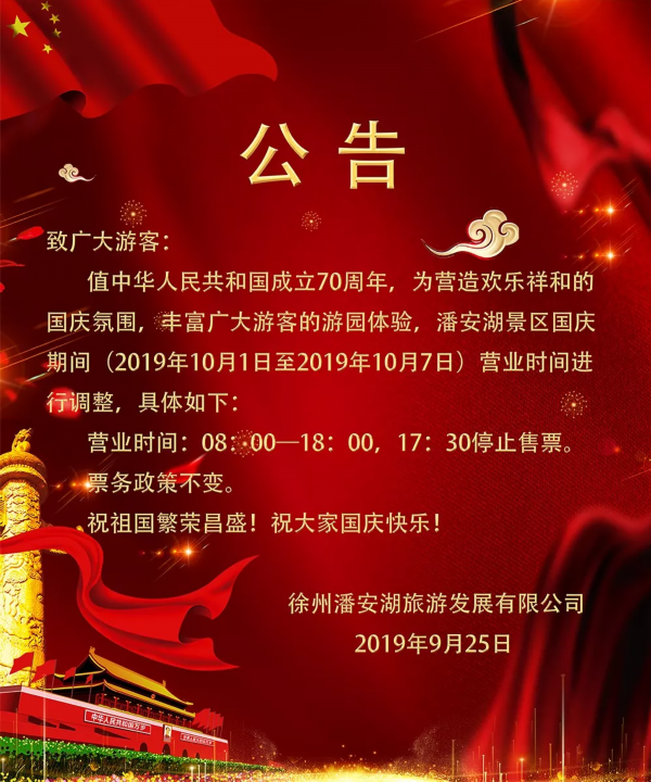 另外,十一期间潘安湖湿地公园营业时间也有调整,小伙伴们要看清哦!