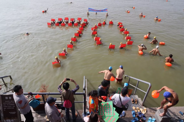 今天上午,云龙湖北岸滨湖公园内热闹非凡。由徐州市冬泳协会主办的2019年横渡云龙湖千米大赛在这里举行。25支冬泳队伍的近500游泳爱好者以游泳健身的方式喜迎国庆佳节,用特殊的方式为祖国母亲庆祝生日。