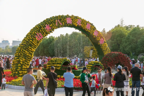 10月1日,2019邳州第六届国庆花展如约而至,30余万盆鲜花、16处大型花卉景观精彩绽放,将沙沟湖水杉公园装扮一新,营造出浓厚的节日氛围。开园第一天就吸引了不少市民。园内各种设计巧妙、造型新颖的花境、花群、花柱与周围环境完美融合,映衬出秋趣之美。
