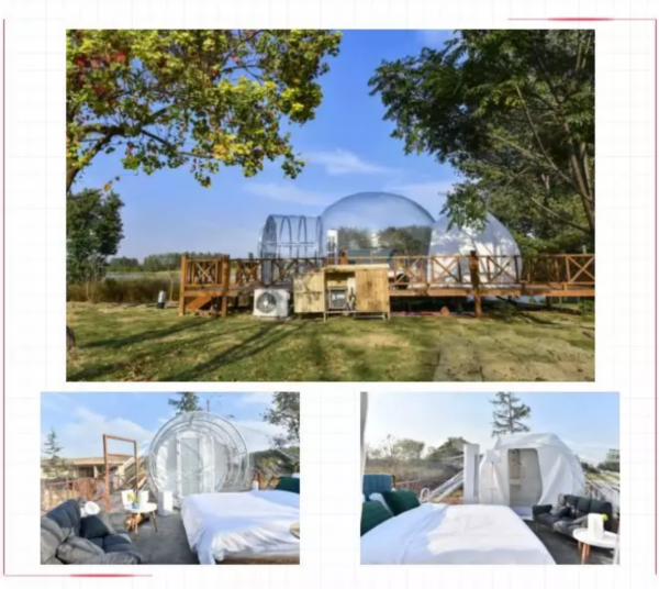 宋庄非遗主题民宿集新沂风情、苏北特色于一体,融入新沂剪纸、新沂蓑衣、东路柳琴等众多省级以上非遗元素。这里还有星空屋、老电影、乡村音乐节、烟花表演……
