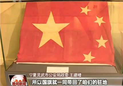 宁夏灵武市公安局政委 王建楼:在清理的过程中发现保险柜下还压着一面国旗,在我的心里国旗的份量是比现金还有票据更重要,所以国旗就一同带回了咱们的驻地。