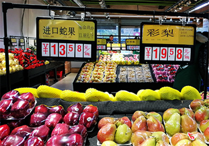 农业农村部数据显示,2019年第39周(2019年9月23日—9月29日),“农产品批发价格200指数”为111.90,比前一周降0.75个点。其中,28种蔬菜周均价环比跌1.3%; 6种水果周均价环比跌5.7%,为连续14周下跌,富士苹果、鸭梨、菠萝和巨峰葡萄环比分别跌10.4%、9.8%、8.2%和3.5%。