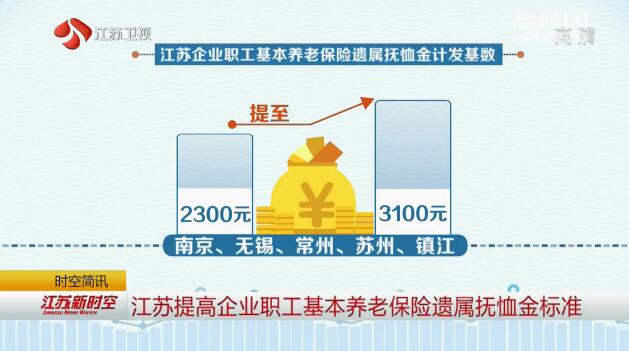日前,省财政厅、省人社厅联合下发通知,提高企业职工基本养老保险遗属抚恤金标准:南京、无锡、常州、苏州、镇江五市的计发基数由2300元提至3100元;南通、扬州、泰州三市由2050元提至2850元;徐州、连云港、淮安、盐城、宿迁五市由1700元提至2500元。新标准从今年1月1日起补发,据测算,此次调整待遇将增加全省企业职工基本养老保险基金支出2.8亿元,惠及遗属14万人。