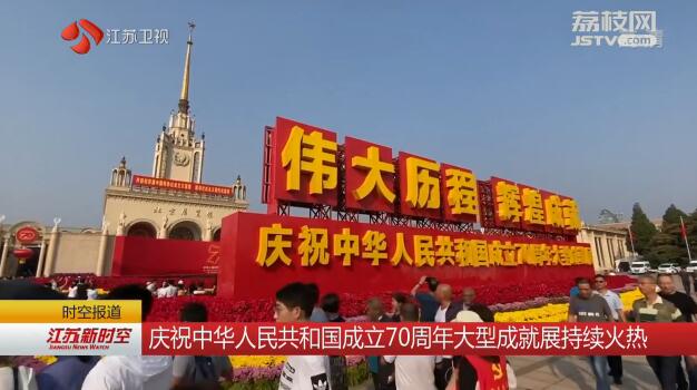 江苏台记者李俊彦:“我现在是在北京展览馆,庆祝中华人民共和国成立70周年大型成就展正在这里举行。据了解,这次成就展包括屹立东方、改革开放、走向复兴等五个部分,全面回顾了新中国成立七十年来在经济社会民生等领域取得的伟大成就。”