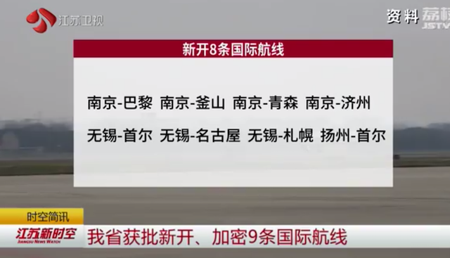 据我苏网 近日,江苏机场获批新开8条国际航线,包括南京-巴黎、无锡-名古屋、扬州-首尔等,加密1条南京-首尔航线;获批加班包机3条,其中全货机包机2条,新开高丽航空的平壤-南京客运包机。详情>>