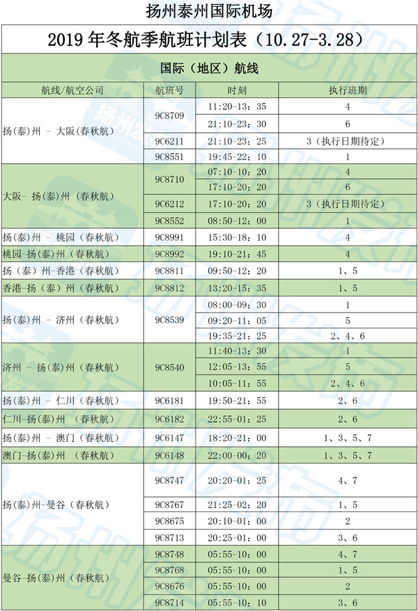 今天下午,扬州泰州国际机场召开冬春航季航线推介会。据悉,10月27日起,民航将迎来2019年冬航季。换季后,扬州泰州国际机场将进一步优化航班时刻和航线网络,新增4条航线,加密部分航线。