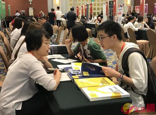 一名学生在细心咨询留学事宜。(图:香港文汇网/卢静怡 摄)