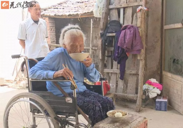 两年过去了,再次见到程蒋氏老人,这位"世纪老人"依然身体硬朗,思维、口齿清晰。双手和之前一样温热有力,胃口也是同样的好,最爱吃的还是菜窝窝头配稀饭。子女说,老母亲去年摔伤了一次,虽然已经康复了,但坐轮椅还是保险点。