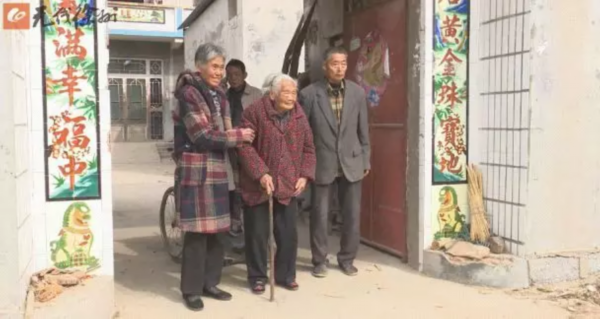 程蒋氏的老伴已去世 60 多年了。两人育有兄妹五人,程蒋氏的大儿子、二儿子都已经去世,如今她由三儿子、五儿子轮流照顾。老四是女儿,嫁在附近不远的村子,也是经常来看望老母亲。一大家人非常和睦。子女们说,附近村子都知道老母亲是位百岁老人,平日里街坊邻居也会找老人聊聊天,讨点"长寿秘诀"。