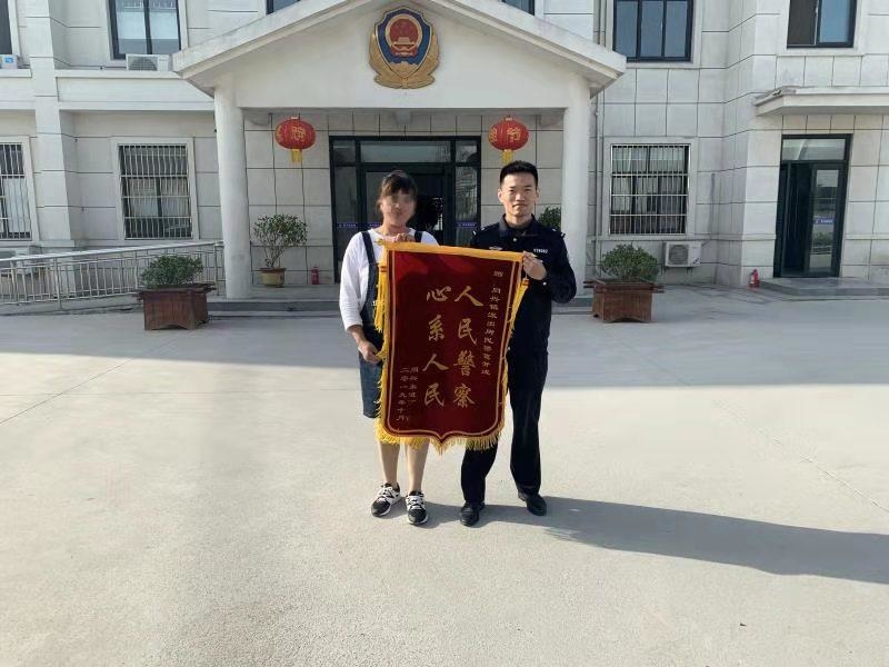 10月31日,家住灌云县同兴镇的居民丁某霞将一面印有“人民警察,心系人民”的锦旗送至同兴派出所民警葛开成的手中,对民警在危急关头及时救助其家人表示感谢。