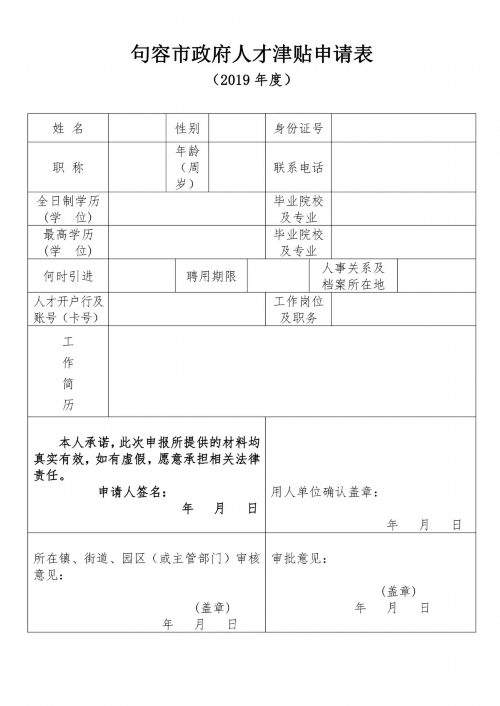 为进一步集聚我市经济社会发展所需的重点紧缺人才,为转型升级创新发展、“一福地四名城”建设提供更加有力的人才支撑,根据《关于印发<句容市政府人才津贴实施细则(试行)>的通知》(句人社〔2018〕54号)文件精神,启动2019年度句容市政府人才津贴申报工作。