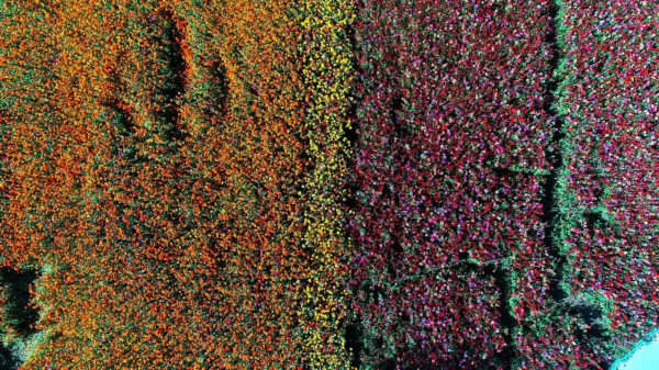 丰硕的果实、斑斓的花海、丰收的喜悦