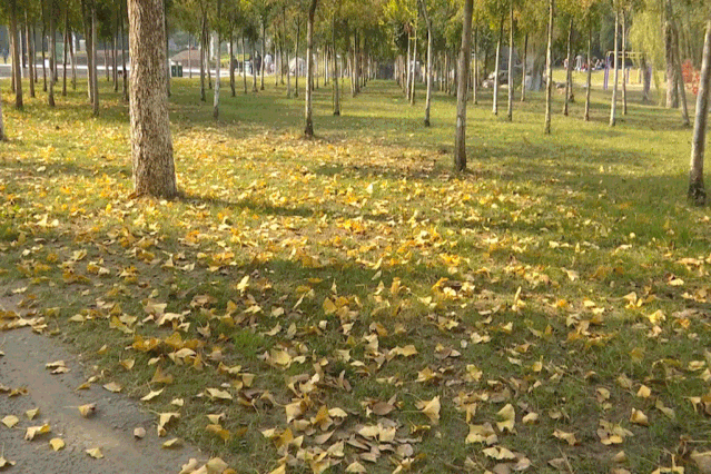 一阵风吹过,林荫小道上又多了不少金黄的叶片,漫步其间,落叶缤纷,层林尽染,吸引了不少市民驻足。