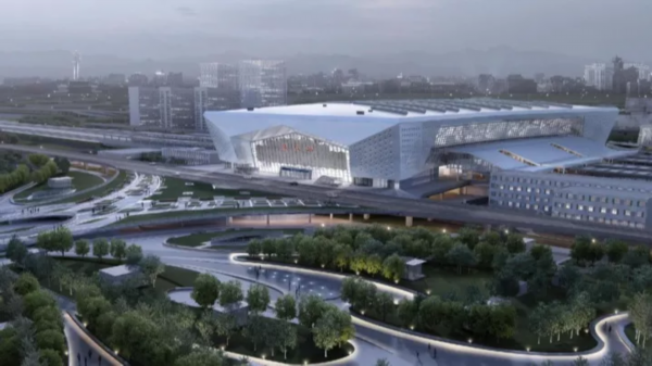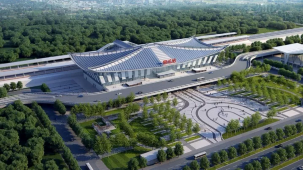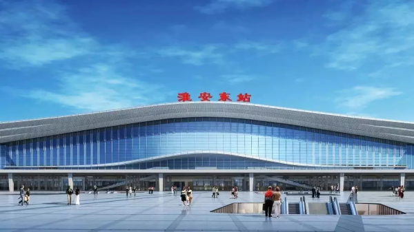 淮安东站位于江苏省淮安市高铁新城核心区,站房为线上式+线侧式的综合大型站,站房总建筑面积为36846㎡。