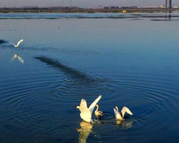 11月15日,随着气温下降,泗洪洪泽湖湿地迎来了首批飞临此地越冬的白天鹅。美丽的白天鹅在湖面上嬉戏玩闹,给湿地增添了无限的生机与活力。 (来源:速新闻 编辑/俞思琼)