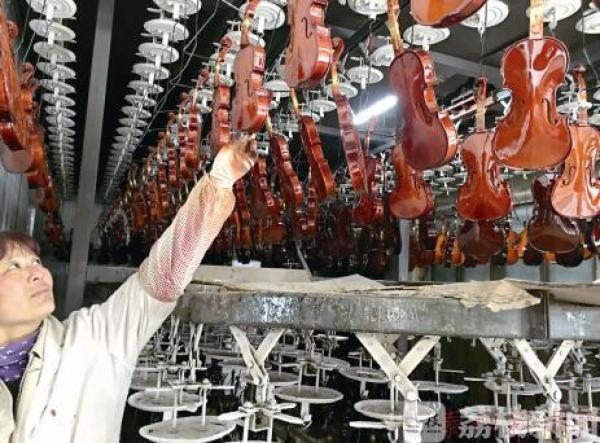 黄桥,是生产西方称为“乐器皇后”小提琴的重镇,每年制造的小提琴、大提琴和吉他,占世界总产量的七成,是全球最大的提琴生产基地。当地约有230家企业从事这个行业,包括提琴成品、配件、配套产品以及材料供应、包装加工、电子商务、物流服务等各个领域,形成了一个完整的产业链,每年销往国内外的提琴产品超过了80万套。