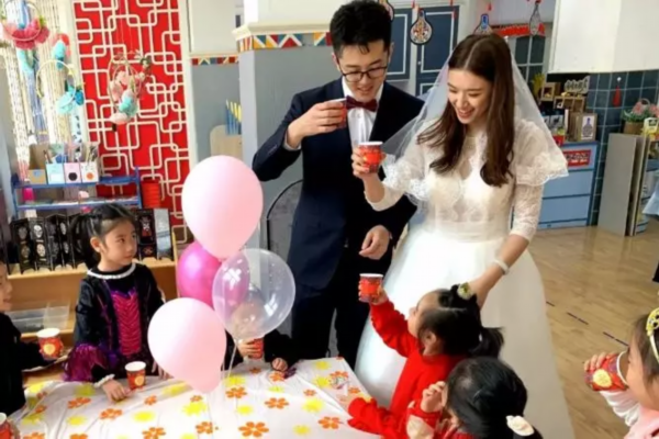 天真无邪的小朋友们特别开心,纷纷表示想参加老师的婚礼。和符梦倩搭班的徐海燕老师听了孩子们的小小心愿,灵机一动:要不和孩子们办一个草坪婚礼吧!