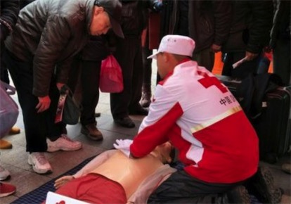 今年11月2日下午2点40许,无锡拈花湾游人如织。在景区红十字救护站门口,无锡市红十字救援队正向过往游客现场演示心肺复苏术,普及推广急救知识和技能。