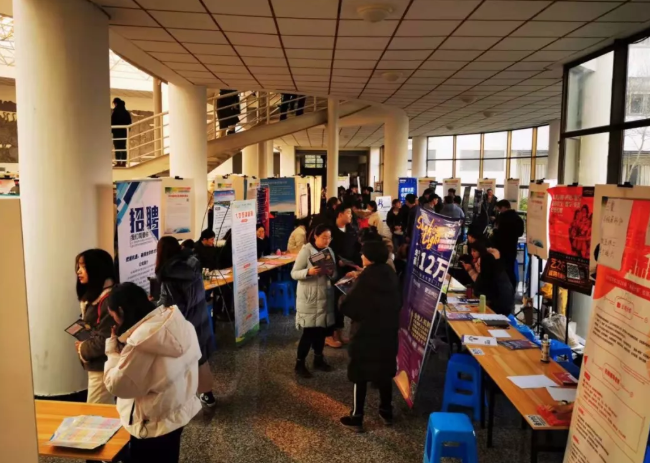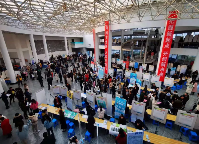 12月8日,江苏省百校联动就业招聘会走进淮阴师范学院,吸引了苏北地区高校的近万名毕业生进场应聘。
