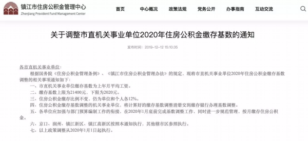 根据国务院《住房公积金管理条例》、《镇江市住房公积金管理办法》的规定,现将市直机关事业单位2020年住房公积金缴存基数调整的相关事项通知如下:
