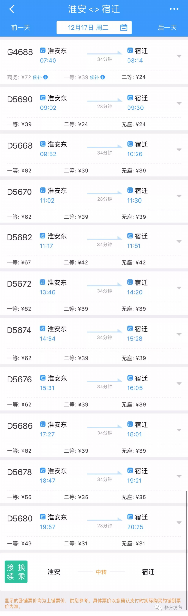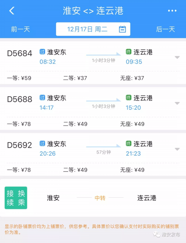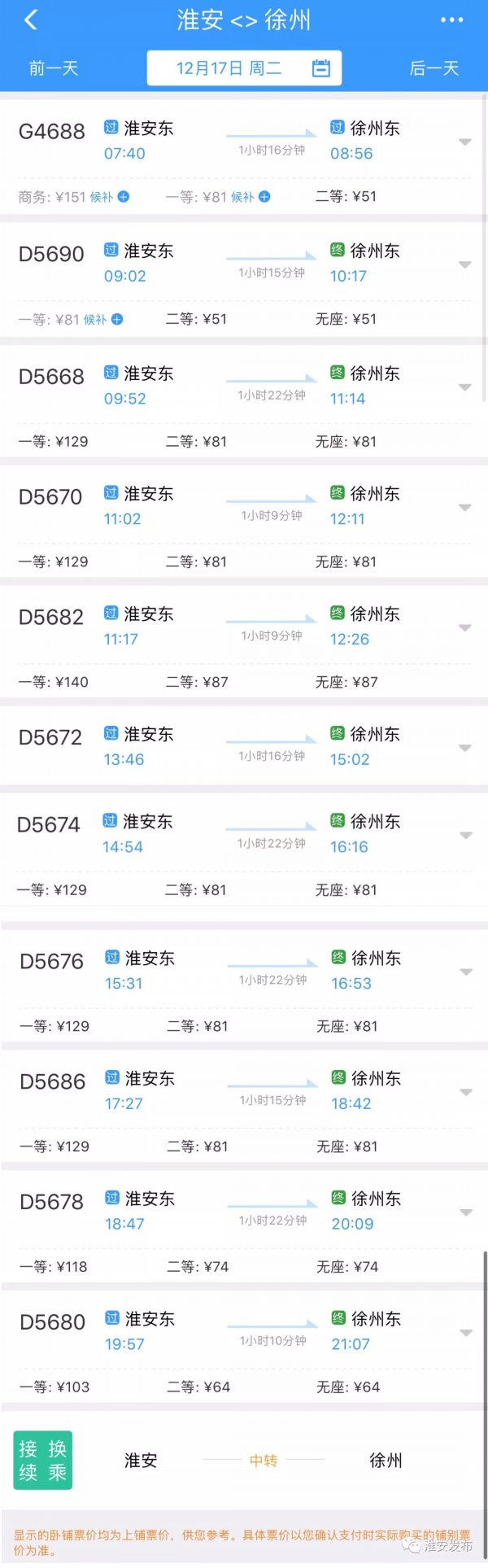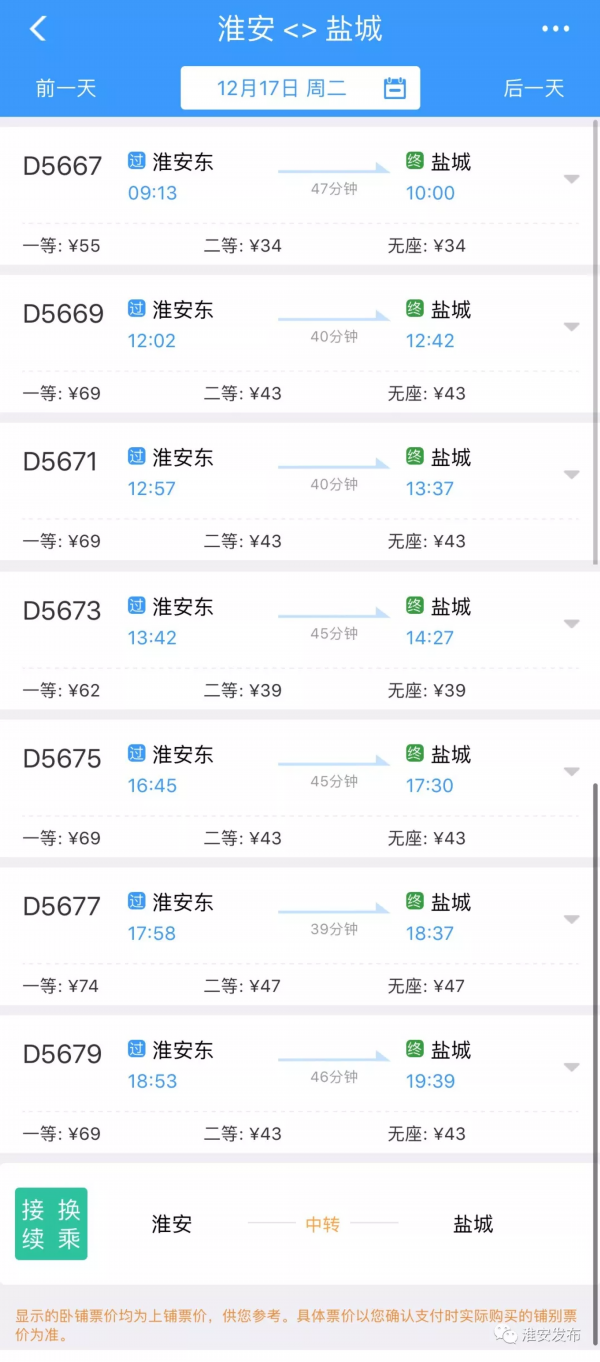具体车次和票价