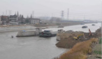 为此,指挥部于今年9月初对老丹金闸桥上的旧钢梁及桥面进行整体拆除,9月下旬,对老丹金闸东侧施工开挖导航槽。经过建设者的努力,11月底,导航槽建设完成。据现场监理工程师法律介绍,原来的丹金闸老桥之间的航道间距只有18米,现在建成后的东侧导航槽最宽有30米,能够满足千吨级船舶双向通航。目前,丹金溧漕河老丹金闸桥东侧护岸已基本建成,西侧护岸还在挖土作业中,预计,本月底将基本完成。接下来就是拆除河中老闸墩以及土方疏浚等,预计,整个老丹金闸桥护岸工程将在明年四月份完工。